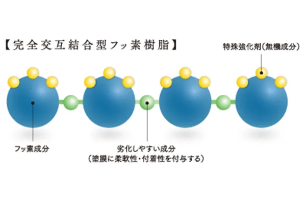 無機成分を豊富に配合しているため、樹脂同士の結合力を向上させています。そのため、従来の塗料をしのぐ高耐候性を実現しています。