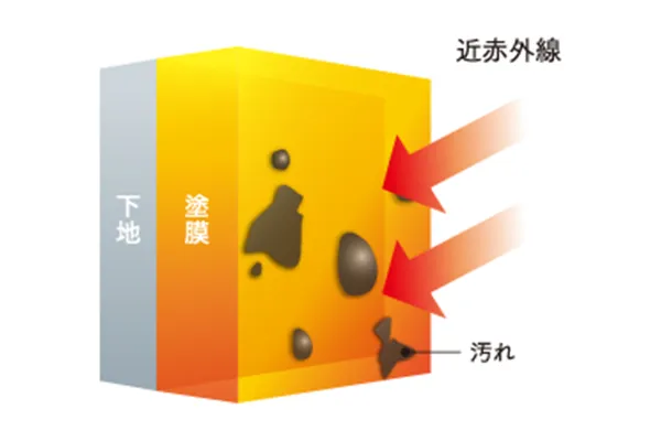 遮熱性能は、付着した汚れに対して熱が吸収されます。