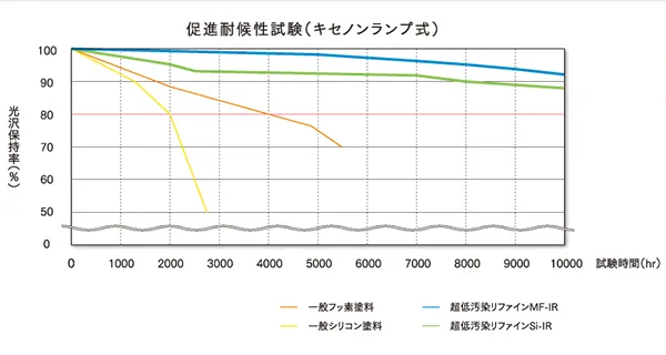 「期待耐用年数」は塗料メーカーの見解により異なりますが、根拠となるデータを見ることも判断材料になります。