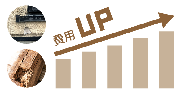 補修範囲が広がり、費用が高くなる