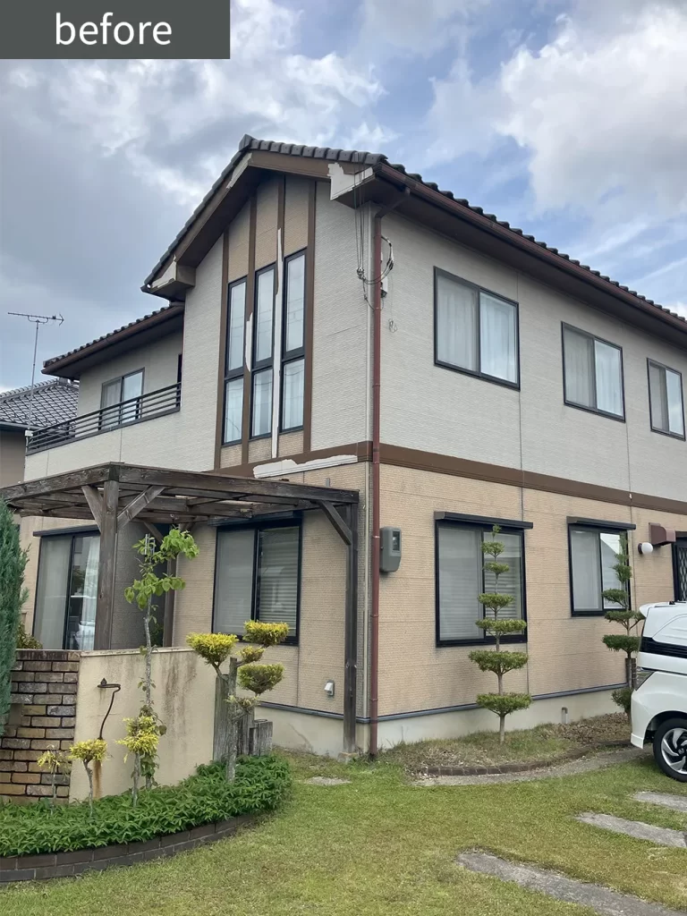 | 担当者よりひと言 | 破風や幕板が著しく劣化しておりました。目地欠落もあり即時メンテナンスが必要な状態でした。下地補修を徹底的に行うことで長持ちが期待できます。 |