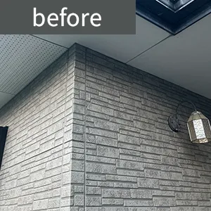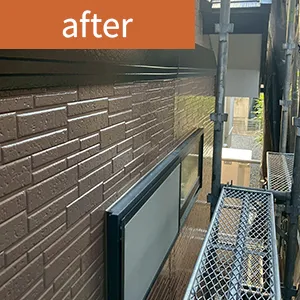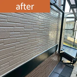 | 担当者よりひと言 | 目地の欠落や外壁材表層の剥がれが見られましたが、丁寧に下地補修を行い遮熱塗料にて塗装いたしました。 |